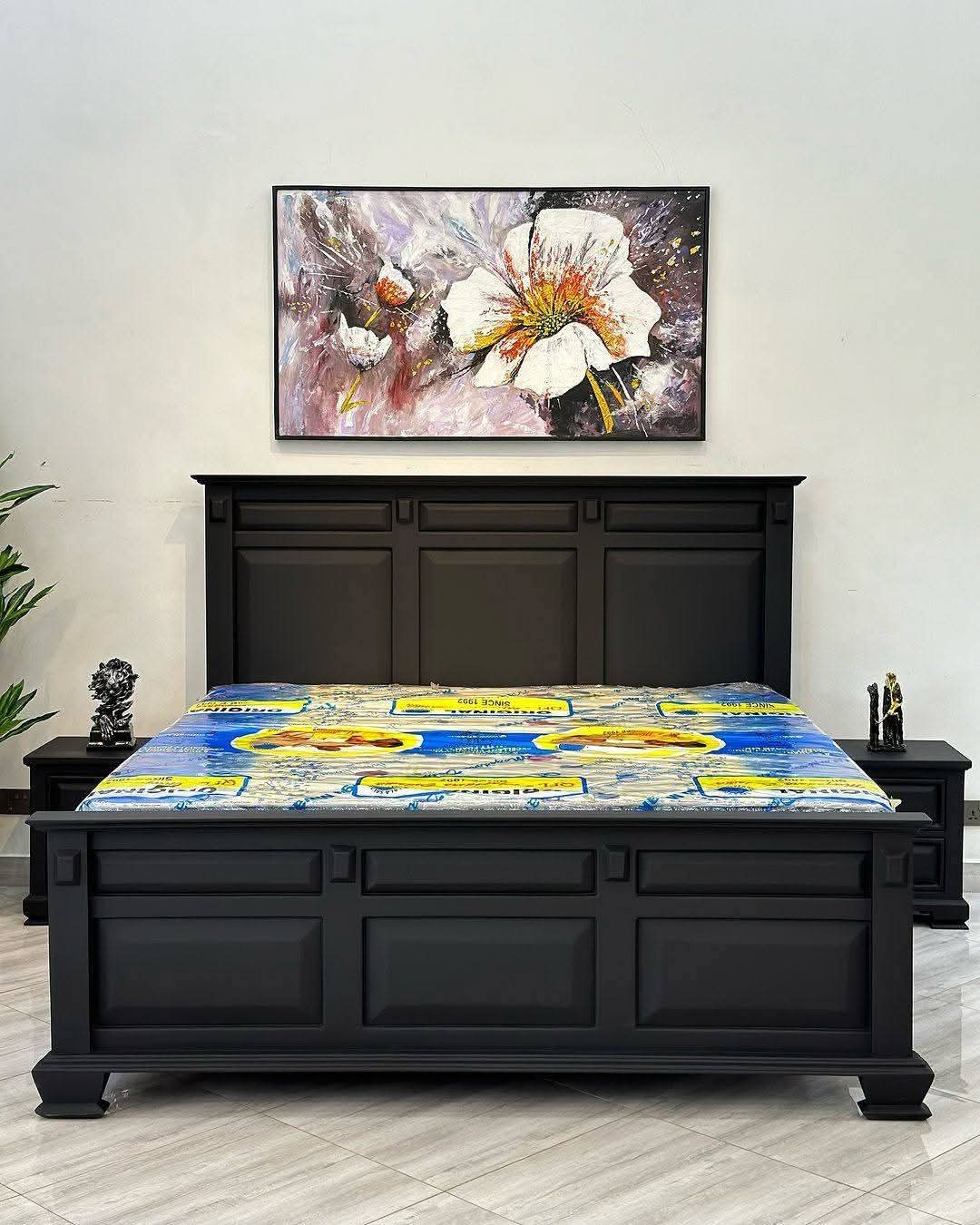 This 6 by 6 executive bed serves as a comprehensive sleep solution for your residence. We include two matching bedside cabinets that flank the bed perfectly, offering convenient storage for your essentials. Therefore, you can achieve a professional, interior-designed look without the stress of matching different furniture pieces. The contrast between the dark frame and vibrant linens creates a luxurious atmosphere. If you want a bed that reflects your success and taste, this handcrafted unit is your best option.